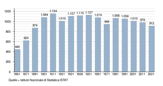 - ↑ Bilancio demografico e popolazione residente per sesso al 31 dicembre 2024. ISTAT. (Bevölkerungsstatistiken des Istituto Nazionale di Statistica, Stand 31. Dezember 2024).