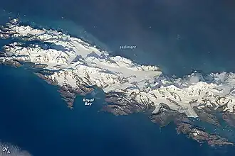 ![]() Satellitenaufnahme von Südgeorgien mit der Royal Bay | ||