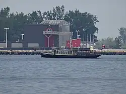 Das Clubhaus auf der Insel ist mit der Stadt durch einen Fährservice verbunden, der von zwei bemerkenswerten Booten betrieben wird, die beide über ein Jahrhundert alt sind und für den RCYC gebaut wurden. Die Hiawatha lief 1895 vom Stapel[17] und die Kwasind wurde 1912 gebaut,[18] die beide von einem Kai am Ship Channel des Hafens von Toronto an der Kreuzung mit der Cherry Street ablegen.