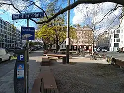 Rudi-Hierl-Platz (links: Dachauer Straße; hinten-rechts: Schleißheimer- und Rottmannstraße)