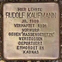 - ↑ Zitiert nach BLLV-Kurzbiografie Rudolf Kaufmann, 1909 bis 1941 ( des vom 26. Dezember 2017 im Internet Archive) Info: Der Archivlink wurde automatisch eingesetzt und noch nicht geprüft. Bitte prüfe Original- und Archivlink gemäß Anleitung und entferne dann diesen Hinweis.