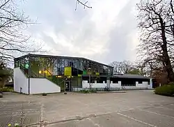 - ↑ Festgestellter Bebauungsplan Nienstedten 9, Feststellungsdatum 3. Juli 1967, Festsetzungen (Planzeichnung / Verordnung) und Begründung des Bebauungsplans, Online. (Die Schule ist auf dem Flurstück 785.)