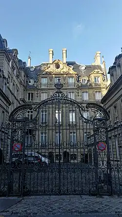 2. Das Gebäude Nr. 22 befindet sich auf dem Gelände der Stallungen des Grand Hôtel de Broglie (73, Rue de Varenne), dessen Gärten miteinander verbunden sind.