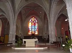 - Die ehemalige Priorats- und heutige Pfarrkirche Saint-André stammt aus der 2. Hälfte 12. Jahrhunderts; im 15. Jahrhundert wurde der ursprünglich möglicherweise nur einschiffige Bau um zwei Seitenschiffe erweitert und in seiner Gesamtheit mit einem Rippengewölbe versehen. Die Fassade beeindruckt durch eine Portalzone im charenteser Stil mit einem Triumphbogenschema. Die darüber befindliche Ebene ist als Blendarkadenzone mit eingestellten Figuren (wahrscheinlich Apostel) gestaltet, deren Blick auf die im Giebelfeld zu sehende Himmelfahrtsszenerie gerichtet ist. Der Innenraum ist dreischiffig mit flachschließender Apsis, die durch ein Fenster im spätgotischen Flamboyant-Stil belichtet wird. Auf der Südseite der Kirche befindet sich ein kleines Portal, welches vom ehemaligen Klausurbereich direkt in den Chor führt und ehemals den Mönchen des Priorats vorbehalten war. Der Kirchenbau ist seit dem Jahr 1903 als Monument historique anerkannt.[4]