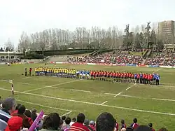 Bis in die späten 1970er Jahre konnte sich Spanien auf Nationalmannschaftsebene im europäischen Amateurrugby, hinter Frankreich, Italien und Rumänien, als vierte Kraft etablieren, bei Rugby-Europameisterschaften gelangen 1954, 1973, 1974 und 1978 jeweils dritte Plätze. Der größte Erfolg ist aber die Teilnahme an der Rugby-Union-Weltmeisterschaft 1999, bei der man jedoch in der Vorrunde ausschied.[5] Derzeit ist Spanien in der Division 1 des European Nations Cups, dem gegenwärtig zweithöchsten kontinentalen Bewerb nach dem Six Nations, vertreten, wo man allerdings bis auf dem dritten Rang 2000 keine nennenswerten Erfolge erreichen konnte.
