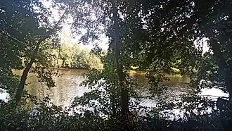 ![]() Rückhaltebecken an der Rugenwedelsau nordöstlich eines Golfclubs | ||