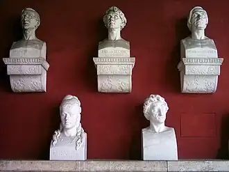Die Schreibweise der Namen und Abkürzungen sowie die Berufsbezeichnungen in der folgenden Liste folgen der Beschriftung der Büsten. (Reihenfolge der Listen: von links nach rechts.)