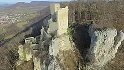 ![]() Blick von Südwesten auf die Ruine Reußenstein | ||