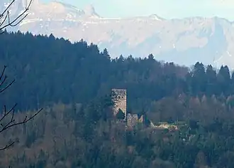 Die Burganlage wurde während des Appenzellerkrieges am 25. November 1405 durch die mit den Appenzellern verbündeten Feldkircher Bürger eingenommen. Der Brand zerstörte alles außer den Turm.[1]