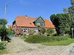Die vorgelegten Baurisse und Anschläge für das neue Wohnhaus des Pächters wurden auf dem Landtag am 17. November 1857 in Sternberg moniert, denn die veranschlagten Schlosser-, Maler- und Glaserarbeiten würden die oeconomischen Bedürfnisse übersteigen. Nach Besichtigung des neu erbauten Pächterhauses durch die Revisionskommission des Landtages am 15. November 1858 vor Ort erschienen ihnen die Dimensionen einzelner Positionen zu gering, sie erkannten die Raumverhältnisse aber an, da sie ja nach dem vorher genehmigten Riß ausgeführt wurden.[19] Das abgewinkelte Backsteingebäude auf einem Feldsteinsockel wird heute von mehreren Familien bewohnt. Die Hofseite ist durch nachträglich angelegte Gärten und Schuppen nicht mehr als ursprüngliches Repräsentationsobjekt erkennbar.