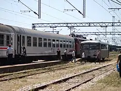- ↑ Volkswirthschaftliche Nachrichten. (…) Verkehr. Lokalbahn Ruma–Klenak. In: Pester Lloyd, Nr. 221/1901 (XLVIII. Jahrgang), 15. September 1901, S. 1, Mitte rechts. (online bei ANNO).