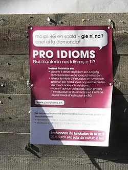 - ↑ Rückschlag für Rumantsch Grischun an den Volksschulen. In: suedostschweiz.ch. Online-Meldung, 8. Dezember 2011, abgerufen am 8. Mai 2016.