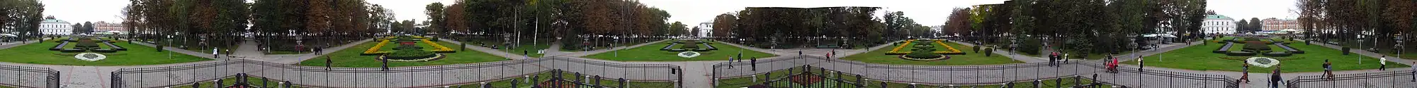Die Grundlage des architektonischen Ensemble des Platzes mit einem Durchmesser von 345 m und einer Fläche von 93.500 m² liegt in den Jahren 1805–1841. In den Jahren 1840–1842 wurde der zentrale Teil des Platzes mit Bäumen bepflanzt und verwandelte sich so in einen Park mit einer Ringstraße und acht radialen Wegen, den Oktoberpark (Жовтневий парк). Unterhalb des Platzes befindet sich heute ein Einkaufszentrum.[3]