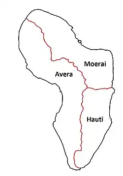 Rurutu gliedert sich in drei communes associées (etwa Teilgemeinden):