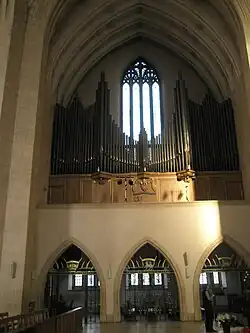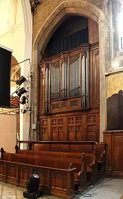 Die Orgel wurde für die St Mark’s Church in der North Audley Street in London gebaut und 1980 in Holy Trinity wieder aufgebaut.[9] | ||