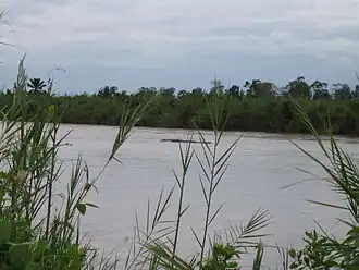 Acht Kilometer vor seiner Einmündung teilt er sich in zwei Arme. Der schmalere westliche Arm trägt nur ein Zehntel der Gesamtwassermenge in den See ein, bildet aber die Grenze zum Kongo. Der breitere östliche Teil ist der Hauptzufluss des Sees.