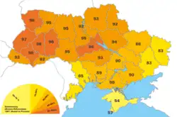 Auch nach dem Ende des Krieges bekämpfte die Ukrainische Aufständische Armee bis in die 1950er Jahre hinein die sowjetische Herrschaft, bis diese endgültig vom NKWD niedergeschlagen werden konnte. Es kam in dieser Zeit auch zu Änderungen der Grenzen der Ukraine, u. a. durch den Anschluss von Transkarpatien an die Ukrainische SSR. 1954 übertrug Nikita Chruschtschow die Krim von der Russischen SSR auf die Ukrainische SSR. Die genauen Motive dafür sind unbekannt, es könnten aber innenpolitische Faktoren eine Rolle dabei gespielt haben und Chruschtschow hatte als Mitglied der Kommunistischen Partei der Ukraine eine enge Beziehung zu dieser.[13] Innerhalb der Sowjetunion spielte die Ukraine eine herausragende Rolle, einmal als Kornkammer des Landes und auch als Industriezentrum durch die wichtigen Industriegebiete im Donezbecken. Mit Leonid Iljitsch Breschnew wurde die Sowjetunion von 1977 bis 1982 von einem Ukrainer regiert. Auch weitere Regierungschefs wie Nikita Chruschtchow und Konstantin Tschernenko hatten enge Verbindungen zur Ukraine.[14] 1985 übernahm mit Michail Gorbatschow (dessen Mutter Ukrainerin war) ein Reformer die Macht in Moskau, was der ukrainischen Nationalbewegung Auftrieb verschaffte. Eine wichtige Rolle für den Zerfall der Sowjetunion spielte auch die Nuklearkatastrophe von Tschernobyl von 1986, die katastrophale Folgen für die Ukraine hatte. Die separatistische Volksbewegung der Ukraine wurde 1989 gegründet. Die Werchowna Rada der Ukrainischen SSR erklärte am 16. Juli 1991 die Souveränität der Ukraine. Nach dem gescheiterten Putschversuch in Moskau 1991 erfolgte die Unabhängigkeitserklärung der Ukraine am 24. August 1991.[15] Das anschließende ukrainische Unabhängigkeitsreferendum von 1991 bestätigte die Unabhängigkeit mit einer landesweiten Mehrheit von 92,3 %, mit Mehrheiten in allen Regionen der Ukraine, einschließlich der Krim.[16]