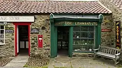 Der erste Gebäudekomplex, direkt hinter dem Museumseingang, besteht aus Schmieden, einem Dorfladen mit Postamt, einer Apotheke und Dorfhandwerkerwerkstätten im Stil der 1950er Jahre.