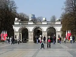 Nach dem Warschauer Aufstand 1944 wurde das Palais von der deutschen Wehrmacht planmäßig zerstört. Erhalten geblieben ist nur ein Fragment der Säulenfassade, in dem sich seit 1918 das Grabmal des unbekannten Soldaten befindet.