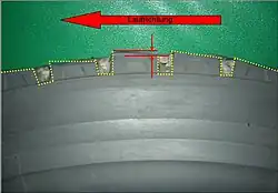 Beim Auftreffen eines Profilblockes auf die Straße wird dieser belastet und in Laufrichtung gestaucht. Beim weiteren Abrollen erfolgt die Entlastung/Entspannung des Profilblockes. Dabei kommt es zu hohen Schlupfbewegungen an der hinteren Profilblockkante, die Folge ist eine sägezahnartige Form des Profilblockes (meist im Schulterbereich).