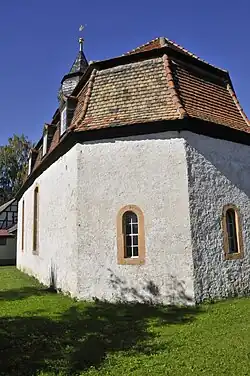 Die Kirche des kleinen Ortes steht sehr niedrig in sumpfigem Gelände und ist, wie der gesamte Ort, „den wilden Wassern sehr ausgesetzt“. Die Wetterfahne trägt die Jahreszahl 1787, und die Bronze-Kirchenglocke wurde 1755 von Martin Rose in Apolda gegossen – sie ist offenbar die einzige von Martin Rose erhaltene Glocke.[3] Die Kirche war Filial von Niedersynderstedt.[4]