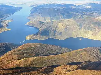 die Osterøybrua unten links Beide Arme des Sørfjords, | ||