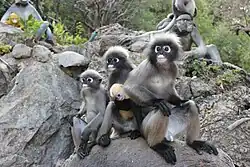 Südliche Brillenlanguren (Trachypithecus obscurus halonifer) auf Penang | ||||||||||||
