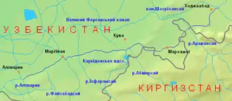 - ↑ Bol'schoi Fergana Canal. In: Great Soviet Encyclopedia. a translation of the third edition. Band 3. Macmillan Inc. New York, Collier Macmillan Publishers London, 1974–1983, S. 438 (Online bei thefreedictionary.com).