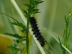Ausgewachsene Raupe von Saturnia pavionella an Salbei