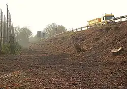 Für den Bau einer Behelfsbrücke vor dem Tunnelbau erfolgten Ende 2022 erste Baumfällungen an den Böschungen des Schnellwegs. Dabei kam es durch die Aktivisten aus dem Besetzercamp zu kleineren Aktionen.[28][29] Etwa 100 Menschen führten eine spontane Demonstration durch,[30] weil angeblich zu viele Bäume gefällt wurden.[31][32] Presseberichten zufolge sicherten 1400 Polizisten, unter anderem aus dem Bundesgebiet, die Arbeiten ab.[33][34] Anfang 2024 kam es zu weiteren Baumfällungen am Schnellweg in einer Größe von etwa fünf Hektar,[25] nachdem die Polizei das Camp und die Baumhäuser der Aktivisten geräumt hatte.