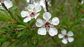 - ↑ I Popay: Leptospermum scoparium (manuka). 7. Januar 2022, doi:10.1079/cabicompendium.30097 (cabidigitallibrary.org [abgerufen am 22. September 2024]).