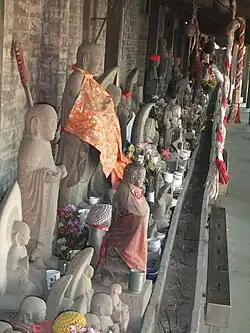 Auf der Innenseite der Außenmauer im öffentlich zugänglichen vorderen Tempelbereich gibt es einen langen, überdachten Umgang mit hunderten von großen und kleinen Statuen aus vielerlei buddhistischen Denominationen, die von Gläubigen dort deponiert wurden.