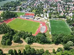 Das Rasengroßfeld hat eine Größe von ca. 105 × 68 m und verfügt über eine Beregnungsanlage und Drainage. Die Leichtathletikanlage Kampfbahn Typ C wurde 2019 komplett saniert und verfügt über folgende Ausstattung: