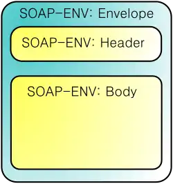 Eine minimale SOAP-Nachricht besteht aus einem Envelope genannten Element, welchem ein lokaler Name zugewiesen werden muss. Dieses Element referenziert mittels eines Namensraum-Attributes auf http://www.w3.org/2003/05/soap-envelope. Kind dieses Elements muss ein Body-Element sein. Optional kann zuvor ein Header-Element stehen. In diesem können Meta-Informationen, beispielsweise zum Routing, zur Verschlüsselung oder zu Transaktionsidentifizierung, untergebracht werden. Im Body-Element sind die eigentlichen Nutzdaten untergebracht.