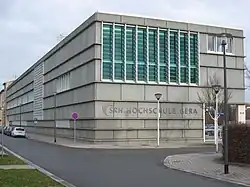 Die Hochschule hatte bis Anfang 2014 ihren Sitz in der Villa Hirsch in Gera. Im März 2014 fand der Umzug in den neuen Campus, ein von David Chipperfield erbautes Gebäude, das ehemals die Geraer Filiale der Landeszentralbank beherbergte, statt. Außenstandorte der Hochschule befinden sich in Bamberg, Düsseldorf, Leverkusen, Bonn, Hamburg, Heide, Heidelberg, Stuttgart und Karlsruhe.