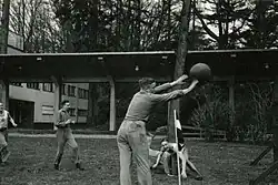 Ab September 1942 wurden Sportanlagen in Avegoor errichtet, darunter eine Sporthalle, die erhalten geblieben ist. Die schweren Erdarbeiten zur Anlage des Sportplatzes und zum Bau der Turnhalle wurde von jüdischen Zwangsarbeitern aus Amsterdam, Rotterdam und Den Haag ausgeführt. Am 2. und 3. September 1942 trafen 139 jüdischen Männer in Avegoor ein. Sie waren in einem Arbeitslager interniert, das sich in der Villa Irene am Zutphensestraatweg in Ellecom befand. Die Zwangsarbeiter waren unter erbärmlichen Lebensbedingungen im Dachgeschoss der Villa untergebracht, die – zusammen mit dem umliegenden Gelände – als „Judenlager Palästina“ bezeichnet wurde. Die Arbeiten dauerten mehr als elf Wochen. Drei jüdische Männer starben in dieser Zeit an den Folgen der extremen Arbeitsbedingungen, des Nahrungsmangels und der Misshandlungen, viele weitere wurden später in deutschen Vernichtungslagern in Osteuropa umgebracht. Verantwortlich für den Bau der Turnhalle war SS-Hauptscharführer Karl Hautz, Leiter der Zentralbauleitung im Stab des Höheren SS- und Polizeiführers in den besetzten Niederlanden, SS-Gruppenführer Hanns Albin Rauter.