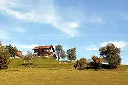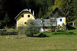 Der Kunstmaler Werner Lössl[1] hat sich hier in dieser beschaulich einschichtigen Landschaft sein Wohnhaus mit Atelier gebaut.