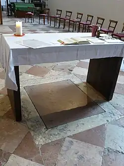 Zusätzlich befindet sich hier der bemalte Sarg von Joseph Hermenegild Herberger († 22.2.1775). Durch eine später eingemauerte Trennwand sind die in einem schlechten Zustand sich befindenden Leichenreste nicht mehr sichtbar.