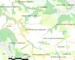 Umgeben wird der Ort Saint-Bonnet-en-Champsaur von den sieben Nachbargemeinden und den Communes déléguées: