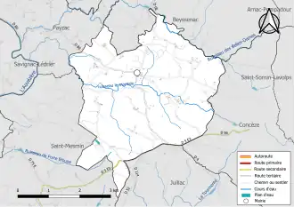 Der Ruisseau des Belles-Dames bildet auf 2,5 Kilometer die Nordostgrenze der Gemeinde zu Beyssenac. Er weist eine Gesamtlänge von 12,81 Kilometer auf und entspringt in der Gemeinde Beyssenac. Er drainiert nach Nordwesten und mündet als linker Nebenfluss in der Gemeinde Payzac in die Auvézère. Die Gemeinde wird in etwa mittig vom Ruisseau le Montaleau entwässert, welcher in der Gemeinde Concèze entspringt und sich dann nach Westen zur Auvézère hin dirigiert. Seine linksseitige Mündung liegt an der Grenze zwischen Payzac und Savignac-Lédrier. Er besitzt zwei rechte und zwei linke Seitenarme. Ein weiterer linker Nebenfluss der Auvézère ist der Ruisseau de Porte Étoupe, dessen Quelle sich bei Maison-Neuve im Südwesten der Gemeinde befindet. Er verläuft nur über 600 Meter im Gemeindegebiet, wovon 400 Meter die Grenze zu Saint-Mesmin darstellen.