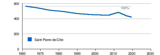 Die Gemeinde Saint-Pierre-de-Côle hat seit 1962 bis jetzt kontinuierlich an Bevölkerung verloren. Dieser langjährige Abwärtstrend wurde jedoch von einem kurzzeitigen Aufschwung im Jahr 2012 unterbrochen.