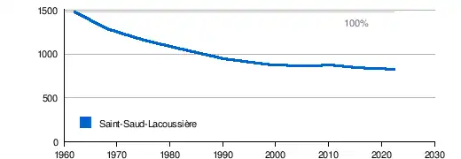 Die Bevölkerungsentwicklung in Saint-Saud-Lacoussière ist seit 1962 generell rückläufig (Bevölkerungsverlust von 43 Prozent), hatte sich aber zwischen 2007 und 2010 kurzzeitig wieder etwas erholt.