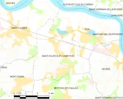 Saint-Sulpice-et-Cameyrac liegt im Weinbaugebiet Entre-Deux-Mers. An der westlichen Gemeindegrenze verläuft das Flüsschen Laurence.