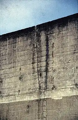 Rissbildung an der Brüstung des Dachgartens, 1997