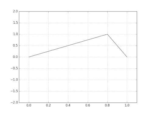 Gemäß der Theorie der Fourier-Reihen lassen sich die Amplituden mit einem Integral bestimmen. Damit ist das Anfangswert-Problem komplett beschrieben. Zur idealisierten Beschreibung der gezupften Saite ist die Funktion eine Dreiecks-Funktion. Diese ist in der Abbildung „Anfangswertproblem der gezupften Saite g(x)“ dargestellt. Formal stellt sich wie folgt dar.