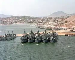 Im Zuge der deutschen Besetzung Griechenlands im Zweiten Weltkrieg wurde der Hafen von der deutschen Luftwaffe am 23. April 1941 bombardiert; dabei wurden die griechischen Kriegsschiffe Kilkis und Lemnos versenkt. Vom September 1941 bis April 1943 war Salamis während des U-Boot Krieges im Mittelmeer Flottillenbasis erst der 23. U-Flottille und später der 29. U-Flottille der Kriegsmarine. Die Insel war deshalb wiederholtes Ziel alliierter Luftangriffe. Im September 1944 wurden die letzten deutschen U-Boote im Hafen von Salamis zerstört.[7][8]