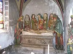 Die Kirche aus dem späten 15. Jahrhundert hat vom romanischen Vorgängerbau eine Vorhalle übernommen. Das einschiffige Haupthaus geht in sechs Seitenkapellen über. Der Glockenturm wurde im 19. Jahrhundert nach Blitzschlag neu errichtet. Im Inneren der Kirche befinden sich Wandteppiche aus dem 17. Jahrhundert, Tafelbilder von Jusepe de Ribera und eine polychrom gefasste steinerne Grablegung von 1495; am Westportal sieht man Reste romanischer Skulptierung.