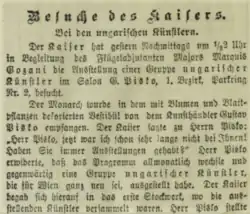 Zu den regelmäßigen Gästen des Kunstsalons Pisko zählte auch der kunstinteressierte österreichische Kaiser Franz Joseph I., der anlässlich der Eröffnung neuer Ausstellungen gerne den Salon in Begleitung eines Flügeladjutanten aufsuchte. Die Wiener Presse berichtete jedes Mal ausführlich über diese Besuche, die meist ungefähr eine halbe Stunde dauerten und eine Ansammlung von Menschen vor dem Gebäude zur Folge hatten, die dem Kaiser beim Verlassen der Galerie zujubelten. Den Zeitungsberichten zufolge liefen die Besuche meist so ab, dass Gustav Pisko den Kaiser am Eingang willkommen hieß – einmal wird berichtet, sein Töchterchen habe dem Kaiser dabei einen Blumenstrauß überreicht – und dann plaudernd mit ihm die Treppe zu den Ausstellungsräumen hinaufstieg. Oben warteten jeweils die ausstellenden Künstler, die vom Kaiser mit Handschlag begrüßt wurden und dann die Führung durch die Ausstellungsräume übernahmen. Zum Abschied bedachte der Kaiser sowohl die Künstler als auch den Galeristen, der ihn wieder hinunter begleitete, mit freundlichen, lobenden Worten.