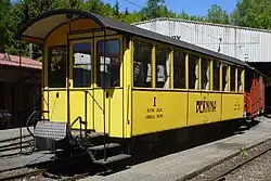 Die k.k. Staatsbahnen hatten zahlreiche Salonwagen unterschiedlichster Bauart im Stand, darunter zwei als "Inspektionswagen" bezeichnete luxuriöse Vierachser mit offener Aussichtsplattform für höchste Fahrgäste.[98] Diese liefen beispielsweise mehrfach in Sonderzügen zu Streckeneröffnungen, wie im Falle der Karawankenbahn (1906) oder der Tauernbahn (1909), bei welcher sogar der Kaiser in einem dieser Waggons reiste. Auch die von den kkStB betriebene Mittenwaldbahn (1912) verfügte über drei dreiachsige "Aussichtswagen" Typ ABy mit Salonabteil.