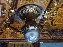 Die Innenausstattung war dem überladenen Stil des Historismus verpflichtet, von Otto Lessing gestaltet, und setzte in großem Umfang Intarsien und Edelholzfurnier ein.[4]